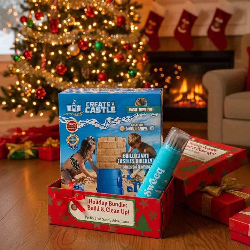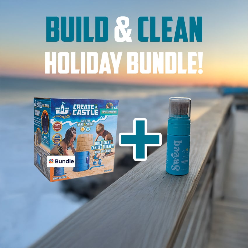Bring your sand or snow creations to a whole new level, now in a Sweeq bundle! Our patented split molds let you build stunning structures in no time. Just buckle it, fill it, and Create A Castle. And with Sweeq, no more sand-stuck-to-your-skin frustration. No more messy car rides. No more awkwardly wiping your hands on your towel (we see you!). Sweeq is the ultimate, non-toxic, sand-busting solution that keeps you feeling fresh, clean, and ready for more fun in the sun. Just apply a little of the non-toxic powder to sandy hands, feet, legs—wherever sand’s got you stuck. Sweeq it Away by using the soft-bristled brush to poof! the sand right off.